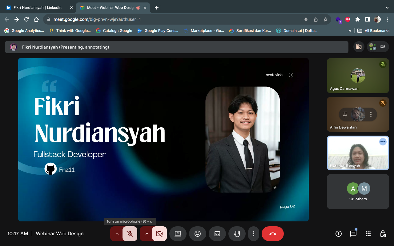 Oemah Website sebagai software house asal Purwokerto, pada 14 Maret 2026 mengelar webinar berjudul Asosiasi Ilmuwan Data Indonesia menggelar acara webinar berjudul “Rahasia Curi Start: Modal Web Design & Soft Skill untuk Mahasiswa”. Hadir dalam acara Alfin Hijria Dewantari, S.Pd selaku Lead Operating Officer, Agus Darmawan, S.Kom, M.Cs Founder dan Fikri Nurdiansyah sebagai pembicara. Acara ini dihadiri ratusan peserta yang mayoritas adalah mahasiswa secara virtual menggunakan Google Meet. Adapun pembahasan acara sebagai berikut.